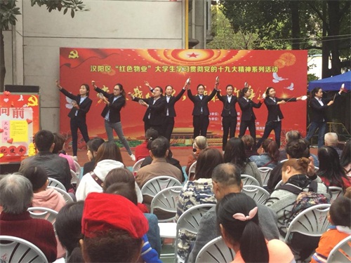 圖為紅色物業(yè)大學生表演百子歌《喜慶十九大》