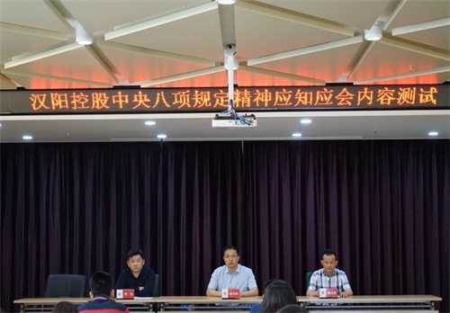2018年5月7日下午18點,由武漢市漢陽控股集團有限公司召開的漢陽控股中央八項規(guī)定精神應(yīng)知應(yīng)會內(nèi)容測試活動終于圓滿收場,本次測試內(nèi)容結(jié)合《中共中央政治局貫徹落實中央八項規(guī)定實施細則》和省、市、區(qū)制定的實施辦法,以及中紀委列出的《違反八項規(guī)定清單80條》,旨在貫徹落實黨的十九大精神及習(xí)近平新時代特色社會主義思想,傳達區(qū)紀委推動中央八項規(guī)定精神落地生根,進一步增強黨員干部紀律規(guī)矩意識的精神。